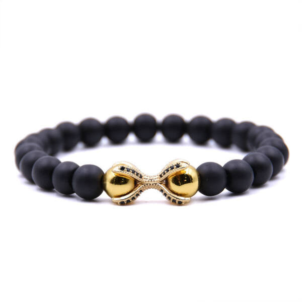 19 cm-es, rugalmas karkötő achát gyöngyökkelFém rész: antiallergén ötvözet arany bevonattal