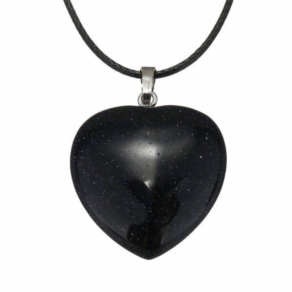 Ásvány szív medál bőr láncon goldstone