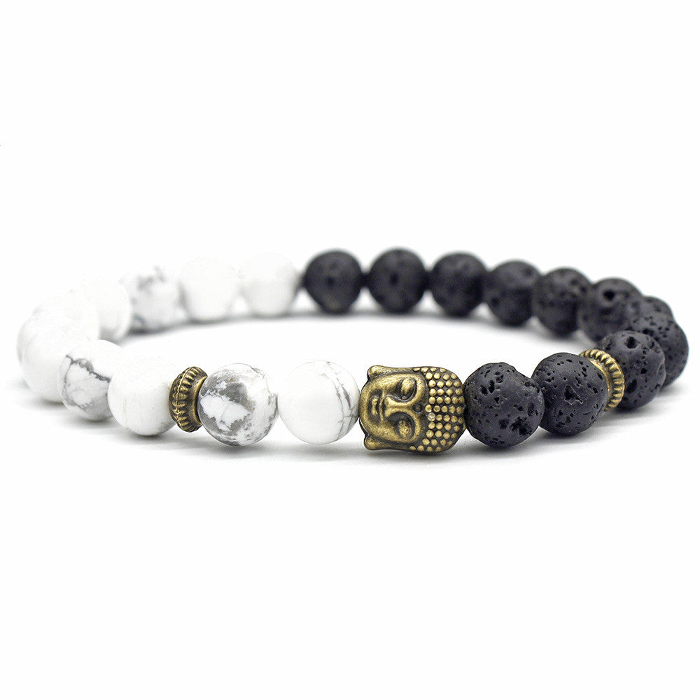- Rugalmas ásványi karkötő magnezit és lávakőből, Buddha dísszel