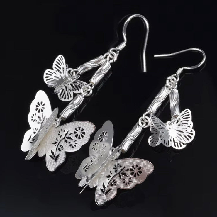 Ezüstös pillangók lógós fülbevaló