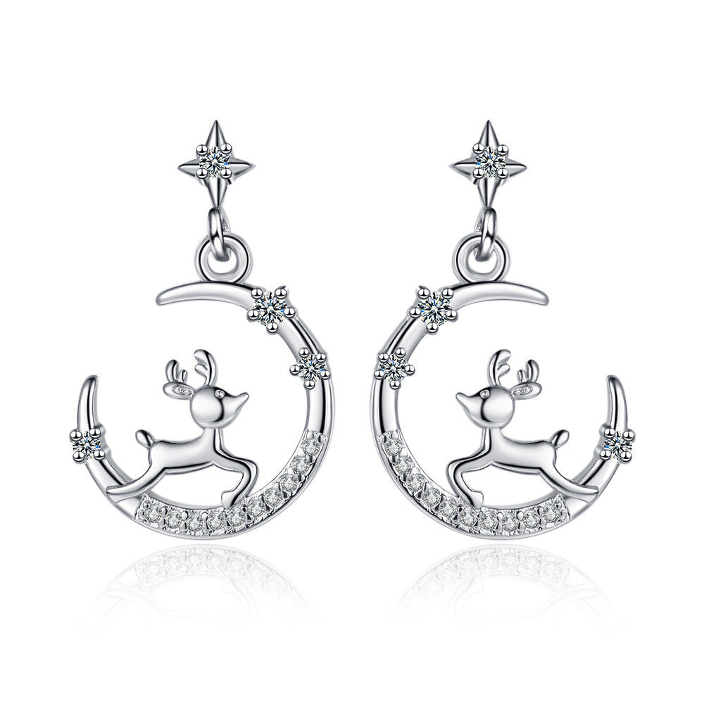 Hold-csillagok-rénszarvas fülbevaló whitegold