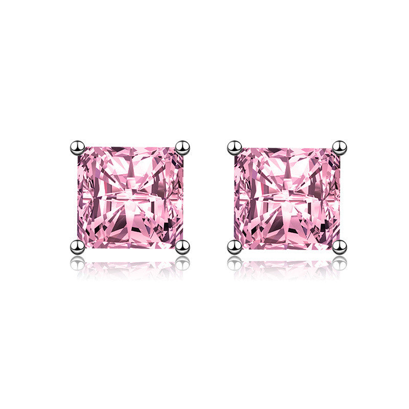 Négyzet kristály fülbevaló whitegold-rózsaszín