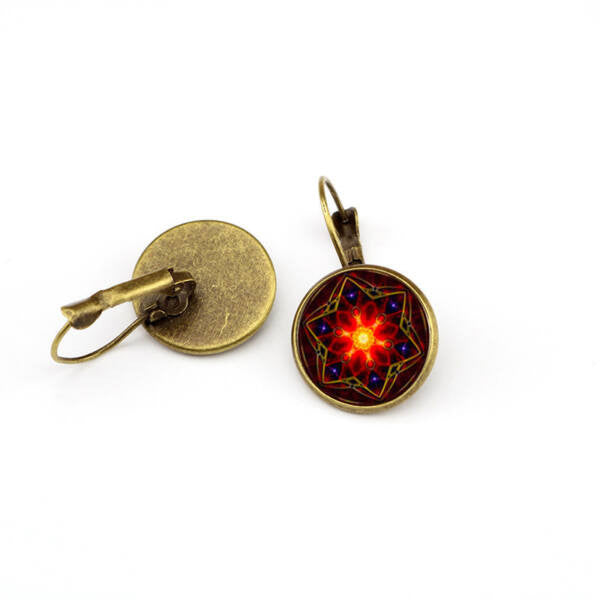 Pirosas mandala akasztós fülbevaló
