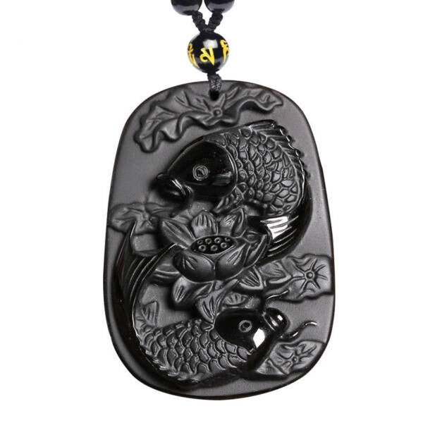 Lánc hossza: 40-70 cm között állíthatóMedál: 3 x 4,5 cm obszidián ásvány ponty motívummal